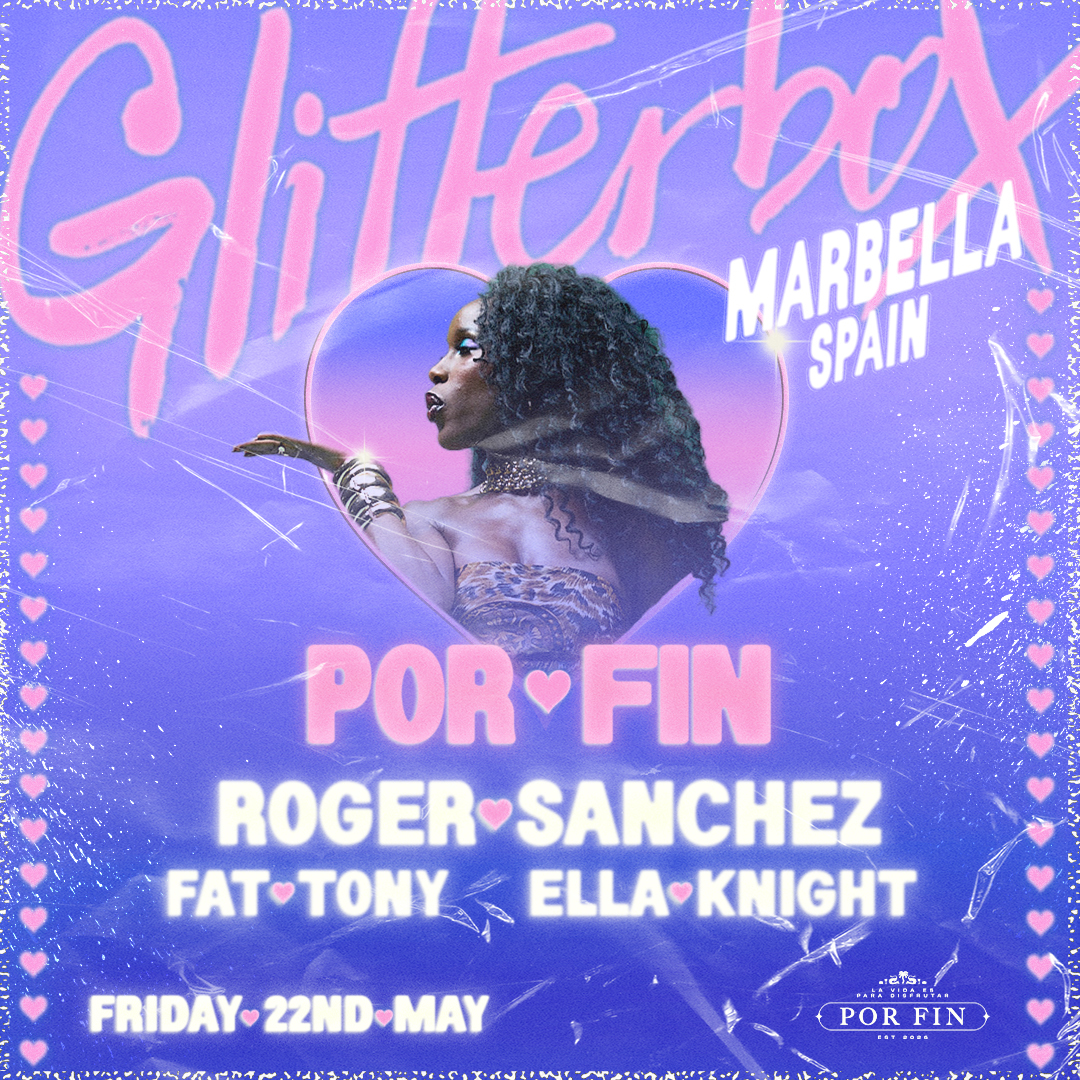 Kicking things off on Friday 22nd May 2026, Roger Sanchez, Fat Tony and Ella Knight bring Glitterbox’s signature disco, house and funk sonics to Por Fin, Marbella’s new luxury beach club on the Costa Del Sol.