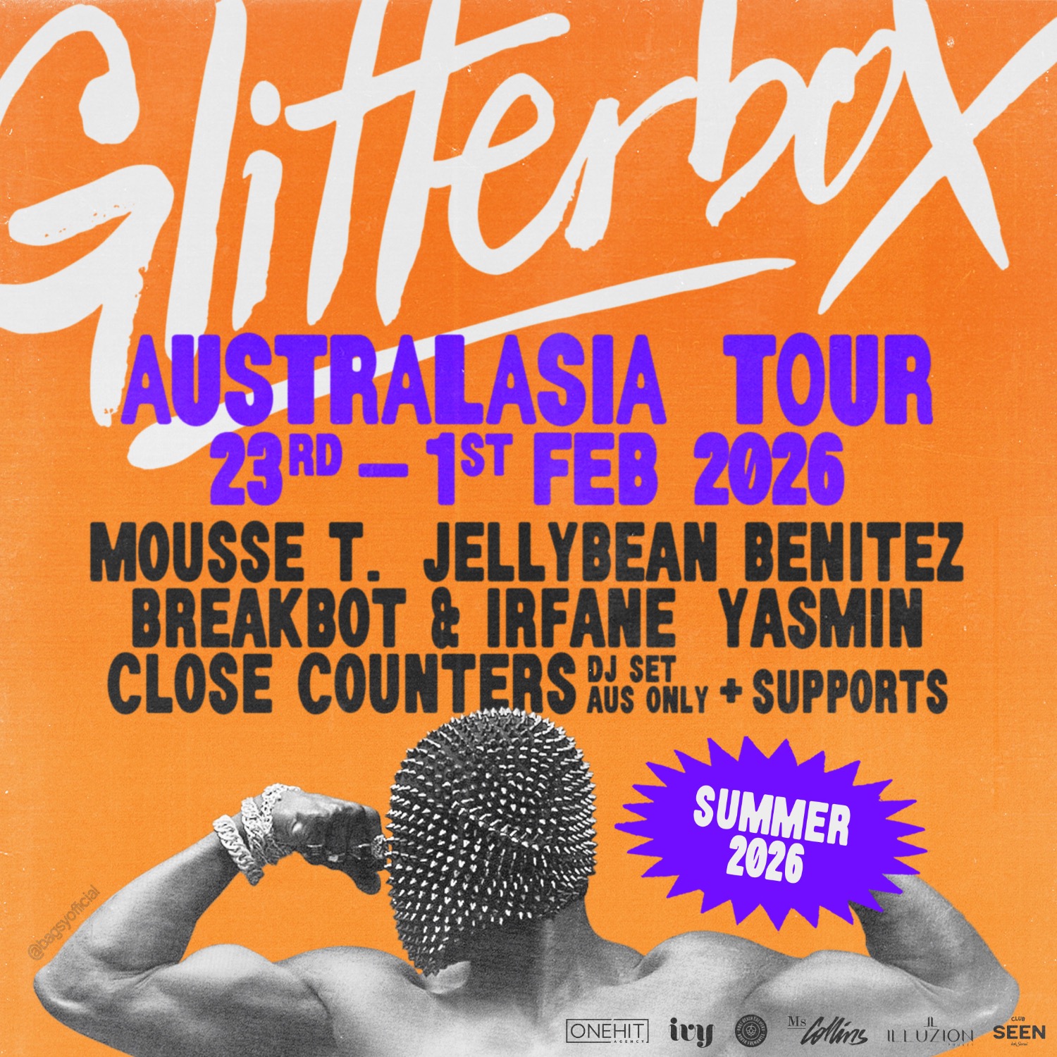 Legendary selectors Mousse T. and Jellybean Benitez headline, with Breakbot & Irfane, Yasmin and celebrated Australian party-starters Close Counters ready to deliver the Glitterbox sonic with style.